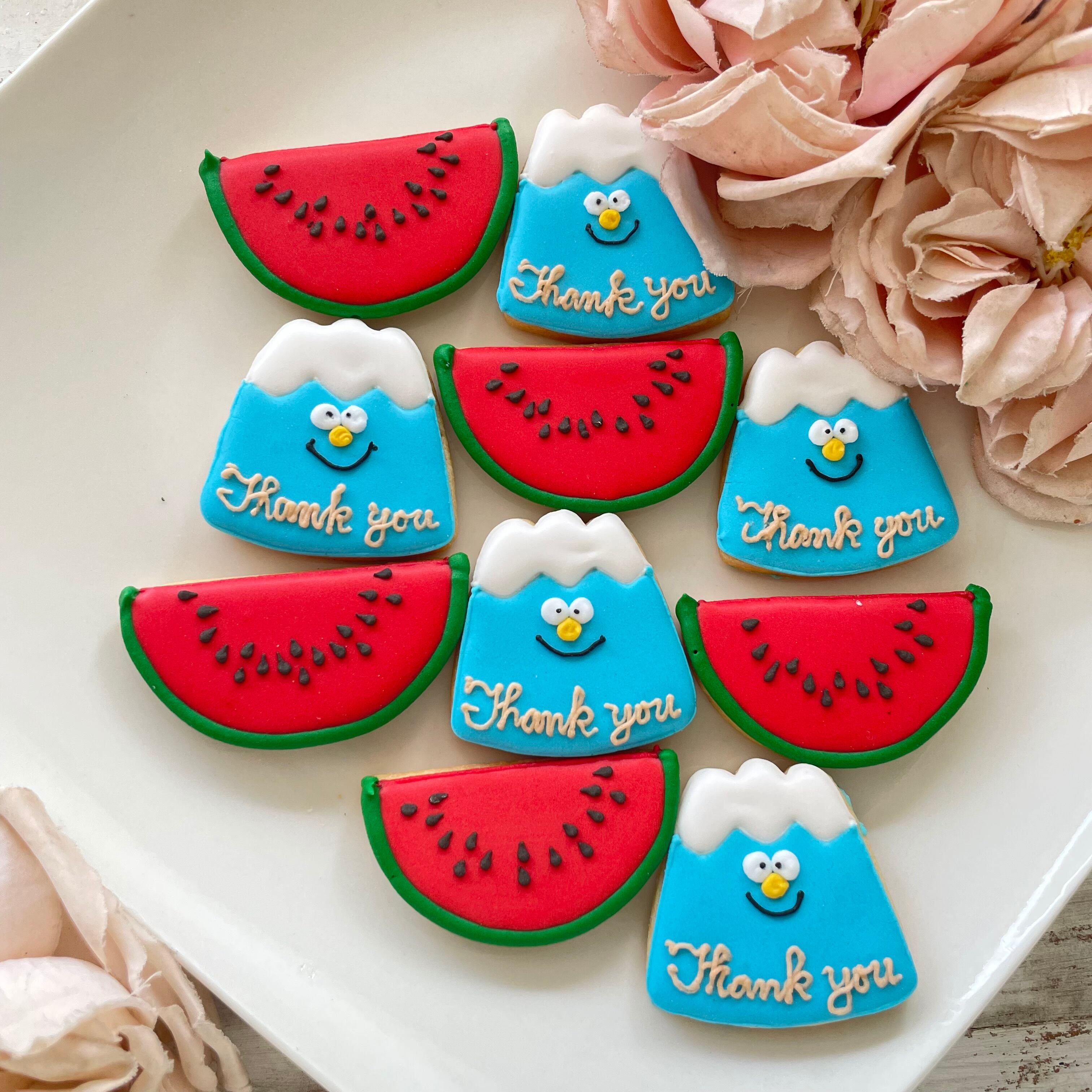 ポップなデザインの富士山と何か(お好きなもの)のアイシングクッキー5袋入りです。